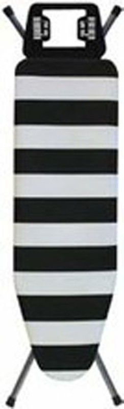 Tabla de planchar K-UNO Lido Rolser con diseño de rayas negras y blancas, ideal para uso doméstico. Fabricada con superficie acolchada y estructura metálica resistente, incluye patas plegables y manija para fácil transporte. Perfecta para planchar ropa con comodidad y eficiencia.
