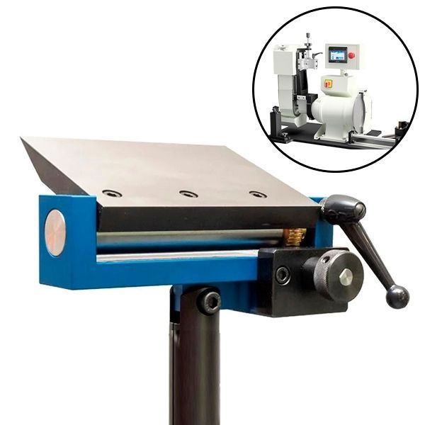 Mesa lapidadora de hierro modelo 16252, ideal para talleres de lapidaria y artesanía. Fabricada en metal resistente con acabado azul y negro, incluye manivela para ajuste preciso y placa superior de acero. Diseñada para uso profesional, ofrece estabilidad y precisión en el trabajo con piedras y materiales duros. Compatible con lapidadoras modelo 01