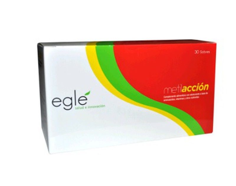 Metilacción de egle, suplemento nutricional en 30 sobres de 7,1 g cada uno. Ideal para apoyar la salud y la inmunidad. Presentado en caja rectangular con diseño moderno en blanco, rojo, verde y amarillo. Perfecto para quienes buscan complementos de calidad para su bienestar diario.