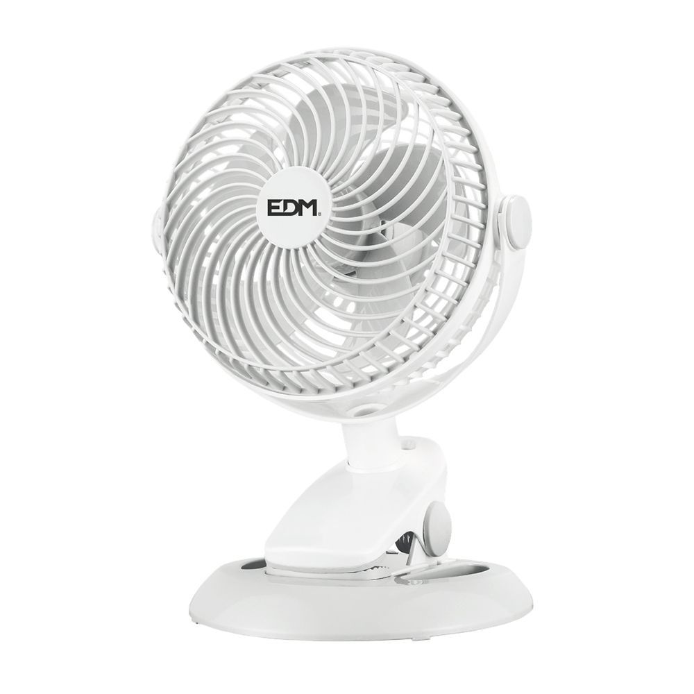 Mini ventilador recargable blanco con pinza y base, ideal para escritorio, cama o viajes. Con diseño compacto y potencia de 3 W, ofrece una brisa fresca y silenciosa. Fabricado en plástico y metal, es ligero y fácil de transportar. Perfecto para uso en casa, oficina o al aire libre.