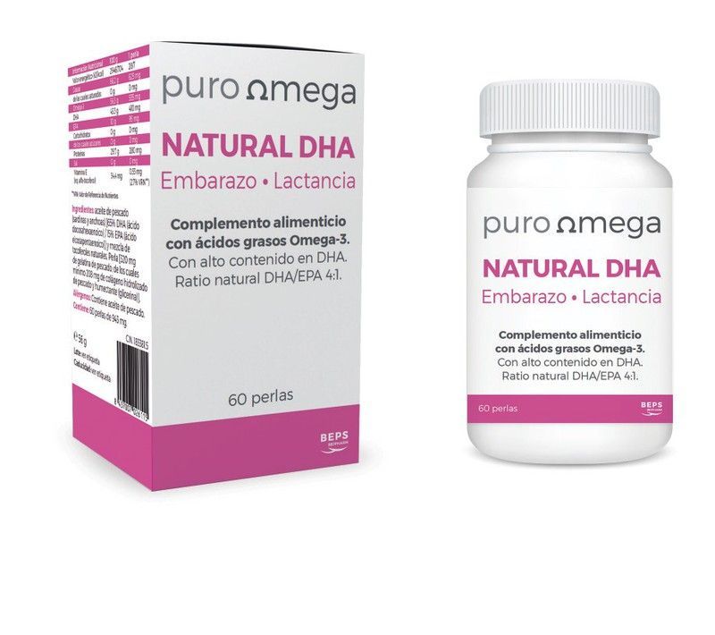 Suplemento alimenticio Natural DHA para embarazadas y lactantes, rico en ácido docosahexaenoico (DHA), ideal para nutrir el desarrollo cerebral y visual del bebé.