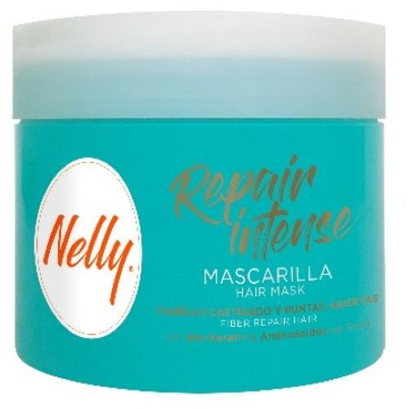 Mascarilla capilar Nelly Repair Intense de 300 ml, ideal para cabellos castigados y con puntas abiertas. Fórmula con Keratina y Aminoácidos de Seda para reparar profundamente la fibra capilar. Aplicar semanalmente para obtener cabello más fuerte, sedoso y con brillo. Envase de plástico con tapa segura y diseño atractivo.