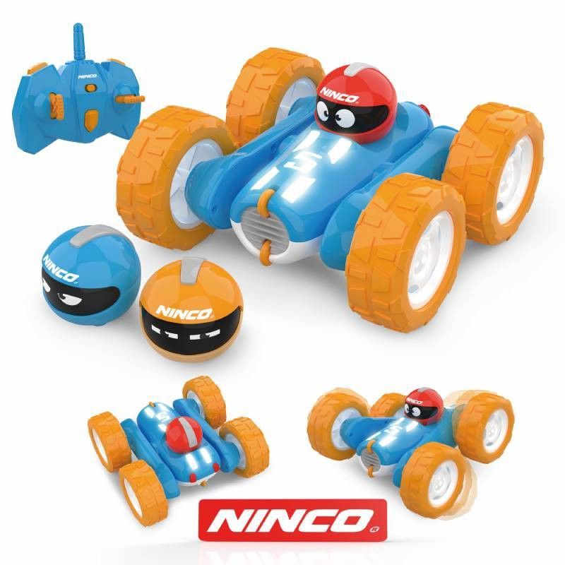 NINCORACERS ACROBATIC: coche de control remoto divertido y resistente para niños, con diseño acrobático y ruedas grandes para aventuras en cualquier superficie. Incluye mando a distancia, accesorios con caras divertidas y versión miniatura. Ideal para juegos al aire libre y desarrollo de habilidades motoras. Fabricado en plástico de calidad, perfec