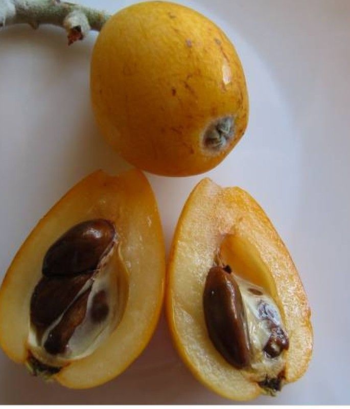 Níspero japonés Tanaka, fruta dulce y jugosa con piel naranja brillante y pulpa tierna de color claro. Ideal para consumir fresca o en postres. Contiene una gran semilla marrón en el centro. Perfecta para disfrutar en temporada o como ingrediente en recetas naturales.