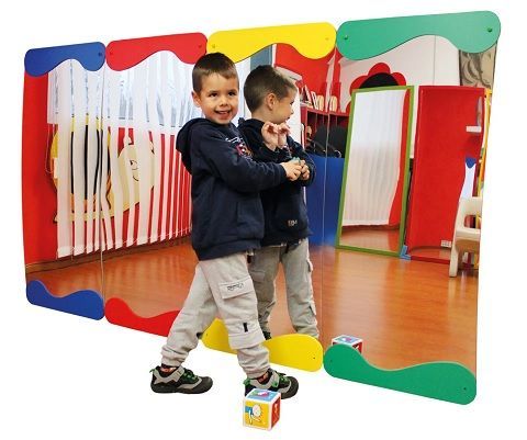 Espejos encables Ondulín con bordes ondulados en colores vibrantes como rojo, azul, amarillo y verde. Ideales para espacios infantiles, fomentan la creatividad y el juego. Fabricados en plástico resistente y seguro para niños. Perfectos para decorar habitaciones o áreas de juego con un toque divertido y funcional.