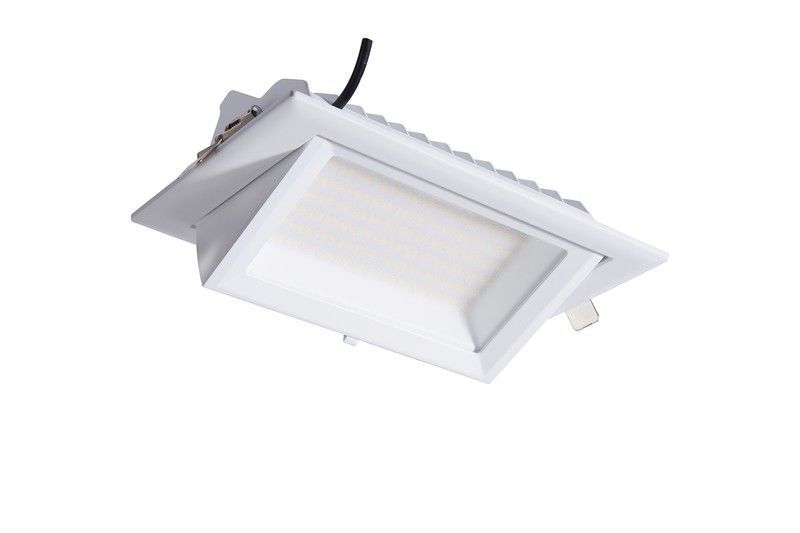 Lámpara empotrable LED cuadrada de 60W con luz blanca cálida, ideal para iluminación interior de hogar y comercios. Diseño orientable con bisagras laterales para ajustar el ángulo de luz. Fabricada en plástico y metal, ofrece una iluminación eficiente y duradera. Perfecta para techos de salones, cocinas o pasillos.
