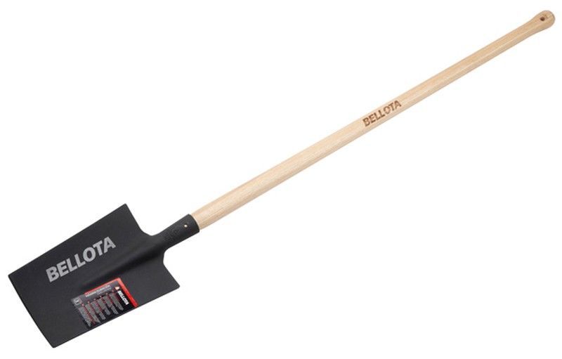 Pala de jardín Bellota con hoja de acero resistente y mango largo de madera natural. Ideal para tareas de jardinería, excavación y movimiento de tierra. Diseño robusto y ergonómico para mayor comodidad y eficiencia en trabajos de bricolaje y mantenimiento del hogar.