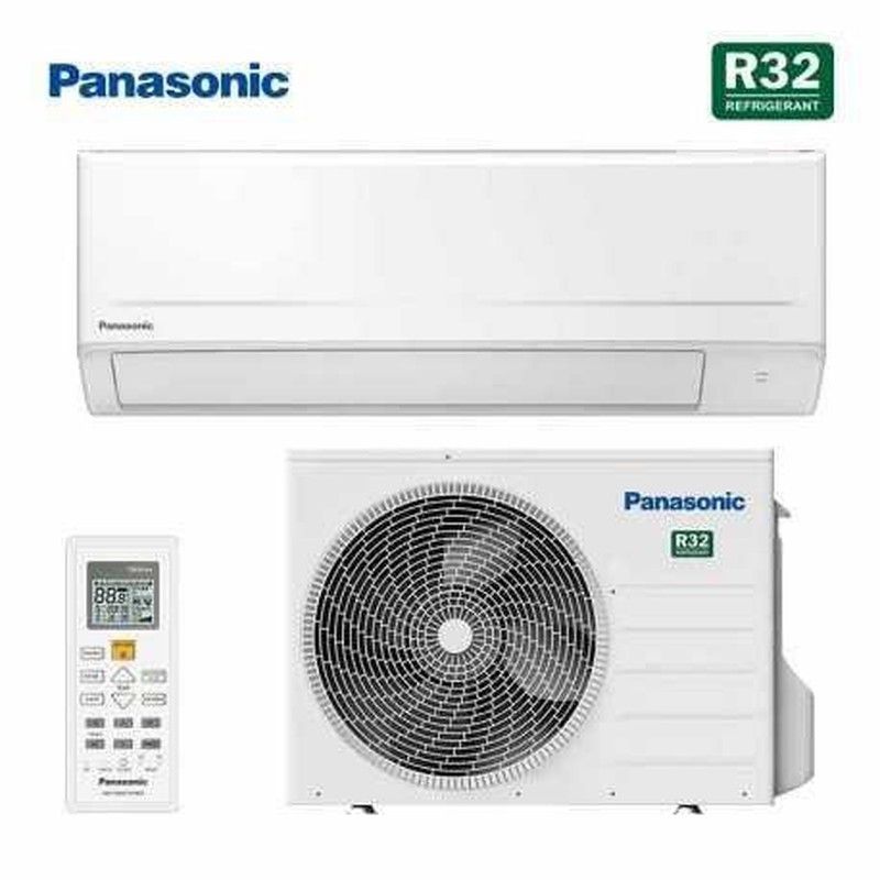 Conjunto split Panasonic KIT-FZ60-WKE, sistema de aire acondicionado eficiente con refrigerante R32. Ideal para hogares y espacios pequeños, ofrece un diseño moderno y compacto en blanco. Incluye unidad interior y exterior, control remoto con pantalla digital. Tecnología avanzada para un clima cómodo y eficiente energéticamente.