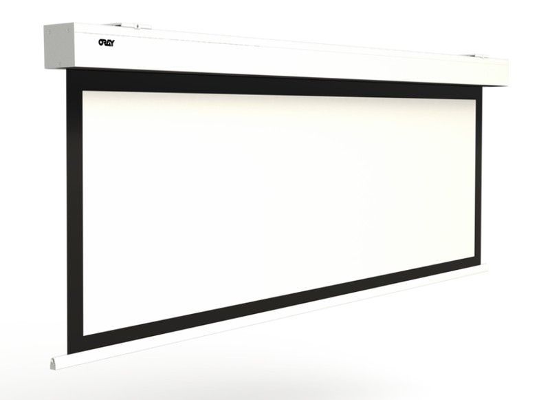 Pantalla para proyección Oray Squar Hc Bn de 350x222 cm con relación de aspecto 16:10, ideal para salas de cine en casa o presentaciones profesionales. Fabricada con materiales resistentes como plástico y metal, ofrece una imagen nítida y uniforme. Diseño elegante y minimalista con marco negro y carcasa blanca, fácil de instalar en techo o pared. P