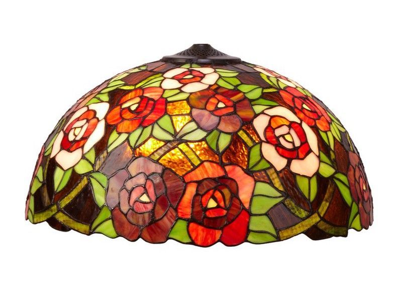 Pantalla de lámpara Tiffany Serie New York con diseño floral en estilo artesanal, ideal para lámparas fijas en salones, comedores o dormitorios. Fabricada con vidrio coloreado y bisel metálico, ofrece una iluminación cálida y decorativa. Diámetro de 45 cm. Perfecta para amantes del estilo vintage y decoración clásica.