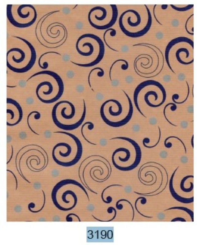 Papel regalo Bob 35x200 Eco Kraft 695 con diseño geométrico de espirales en azul y gris sobre fondo marrón. Ideal para envolver regalos con estilo y sostenibilidad. Textura natural de kraft, perfecto para ocasiones especiales y decoración de regalos con toque artesanal.