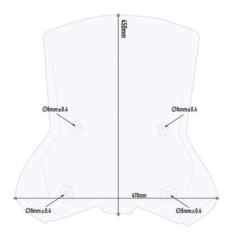 Parabrisas Givi sin herrajes para KTM Adventure 390, 790 y 890 (modelos 2019-2021). Diseño aerodinámico con medidas precisas (450 mm de altura y 470 mm de anchura) y cuatro orificios de montaje de 6 mm para una instalación segura. Ideal para motociclistas que buscan protección contra el viento y la lluvia sin necesidad de soportes adicionales. Fabr