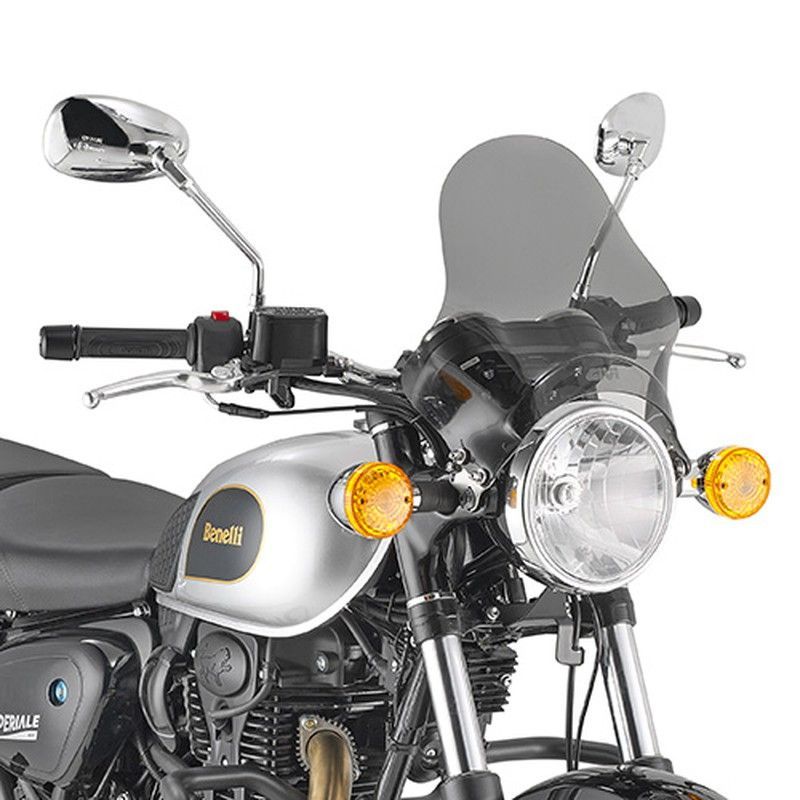Parabrisas universal para motocicletas naked con anclajes Givi A201. Diseño aerodinámico y transparente, fabricado en plástico resistente y montado con anclajes de acero inoxidable. Ideal para mejorar la protección contra el viento y la lluvia en rutas urbanas y carretera. Compatible con múltiples modelos de motos naked. Instalación sencilla y dura