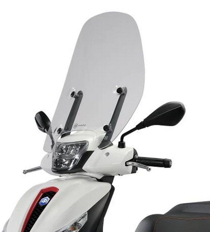 Parabrisas transparente para Piaggio Medley 125 e5 2021, fabricado en plástico resistente y de alta calidad. Diseño aerodinámico y curvo para mayor protección contra el viento y la lluvia. Fácil instalación con soportes metálicos. Ideal para conductores que buscan comodidad y seguridad en trayectos urbanos y largos recorridos. Perfecto para mejorar