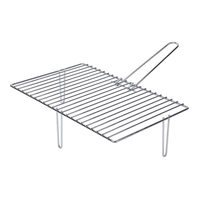 Parrilla cincada de 3 patas para chimeneas, fabricada en acero inoxidable de alta calidad. Con dimensiones de 46,6x28 cm, ofrece una superficie resistente y duradera para cocinar al aire libre. Incluye asa ergonómica para un manejo seguro y fácil. Ideal para barbacoas, chimeneas o fogones, permite una cocción uniforme y evita el contacto directo co