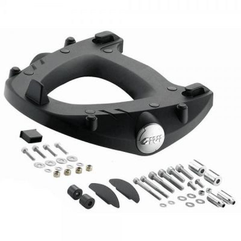 Parrilla Givi M5 Monokey para montaje de maletas en motocicleta. Fabricada en plástico resistente y acero inoxidable, ofrece una instalación segura y rápida. Incluye todos los accesorios necesarios para una fijación firme. Ideal para motociclistas que buscan transporte seguro y duradero. Diseño negro con detalles plateados y logotipo Givi.