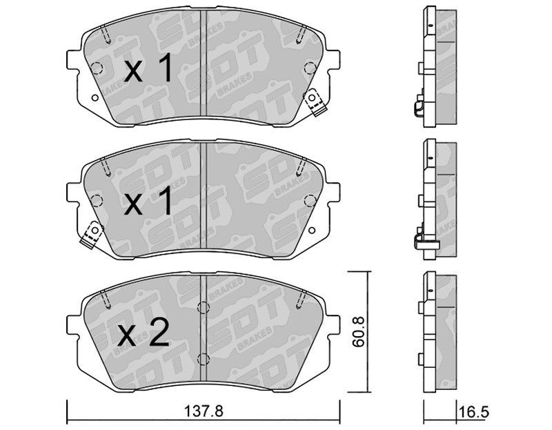 Pastillas de freno SDT FDHP 1050 2163000, diseñadas para vehículos motorizados. Fabricadas con materiales de alta resistencia como cerámica y metal, ofrecen una frenada precisa y duradera. Ideales para conductores que buscan rendimiento y seguridad en todo tipo de condiciones. Incluyen tres pastillas con dimensiones precisas: 137.8 mm de ancho, 80.