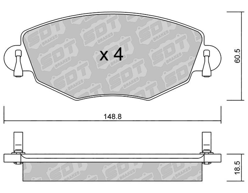 Pastillas de freno SDT FDHP 1050 2182100, diseñadas para un rendimiento óptimo en vehículos motorizados. Fabricadas con materiales de alta calidad como cerámica y metal, ofrecen una excelente resistencia al calor y una durabilidad superior. Incluyen cuatro pastillas con dimensiones precisas (148,8 x 60,5 x 18,5 mm) y soportes metálicos para una ins