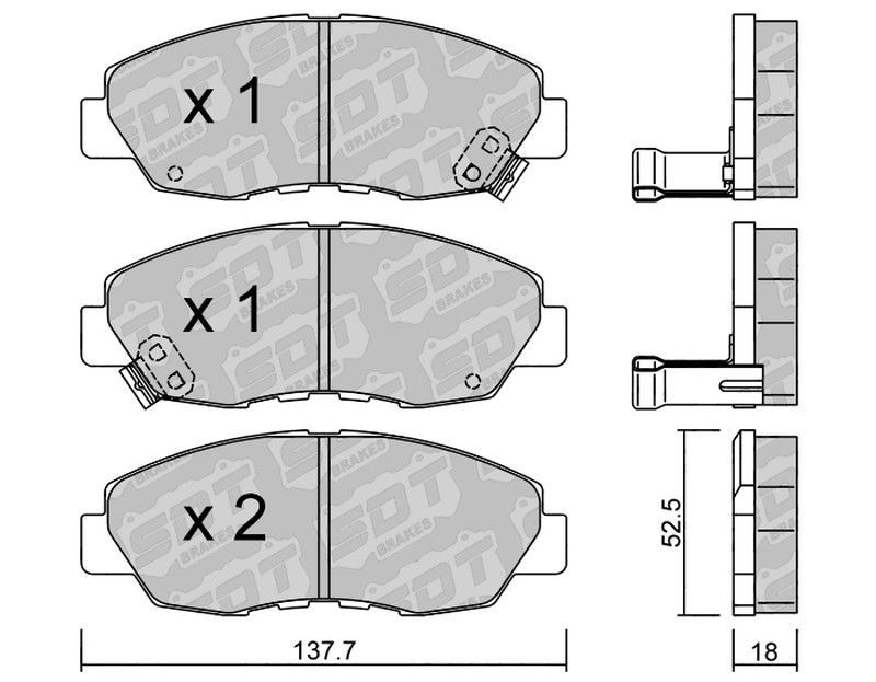 Pastillas de freno SDT FDHP 1050 2183000, fabricadas con materiales de alta resistencia como cerámica y metal, diseñadas para ofrecer una frenada precisa y duradera en vehículos motorizados. Ideales para conductores que buscan rendimiento y seguridad. Incluyen soportes metálicos y dimensiones precisas (137.7 x 52.5 x 18 mm) para una instalación per