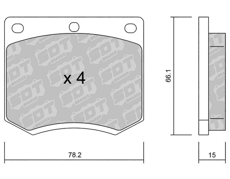 Pastillas de freno SDT FDHP 1050 2186200, fabricadas con materiales de alta resistencia como cerámica y metal, ideales para vehículos motorizados que requieren un rendimiento óptimo y durabilidad. Diseño curvo con tres orificios de montaje y dimensiones precisas (78.2 x 66.1 x 15 mm). Paquete de 4 unidades para reemplazo completo. Garantizan una fr