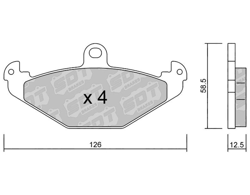 Pastillas de freno SDT FDHP 1050 2192000, fabricadas con materiales de alta resistencia como cerámica y metal, ideales para vehículos motorizados que requieren un rendimiento óptimo en frenado. Diseño preciso con dimensiones de 126 mm de ancho y 58.5 mm de alto, espesor de 12.5 mm. Perfectas para mejorar la seguridad y durabilidad del sistema de fr