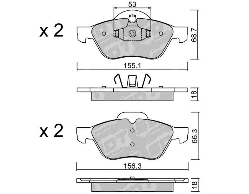 Pastillas de freno SDT FDHP 1050 2195400, diseñadas para vehículos motorizados. Fabricadas con materiales de alta resistencia como cerámica y metal, ofrecen una frenada precisa y duradera. Incluyen dos juegos de pastillas con dimensiones precisas (155.1 mm y 156.3 mm de largo) y espesor de 18 mm. Ideales para mejorar la seguridad y rendimiento del