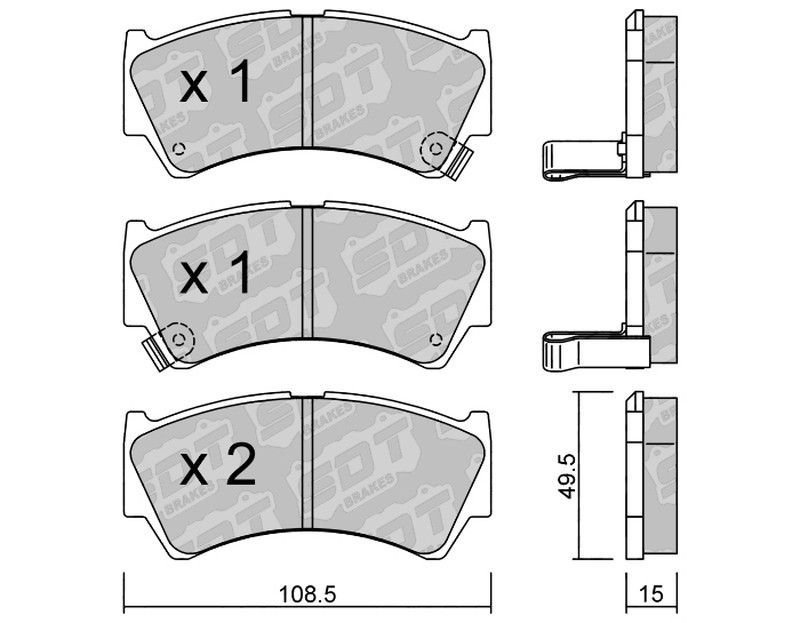Pastillas de freno SDT FDHP 1050 2196000, diseñadas para vehículos motorizados. Fabricadas con materiales de alta resistencia como cerámica y metal, ofrecen una excelente eficacia de frenado y durabilidad. Ideales para conductores que buscan seguridad y rendimiento. Dimensiones precisas: 108.5 mm de ancho, 49.5 mm de altura y 15 mm de espesor. Incl