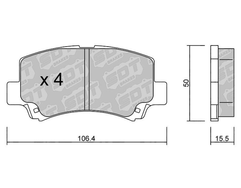 Pastillas de freno SDT FDHP 1050 2196500, fabricadas con materiales de alta resistencia como cerámica y metal, ideales para vehículos motorizados que requieren un rendimiento óptimo y durabilidad. Diseño con ranuras de ventilación para una mejor disipación del calor y una frenada precisa. Incluye 4 pastillas por juego, con dimensiones precisas: 106