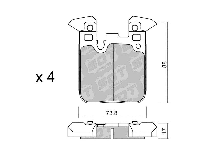 Pastillas de freno SDT RR1080 2518700RR, diseñadas para vehículos motorizados. Fabricadas con materiales de alta resistencia, combinan metal y fibras sintéticas para ofrecer un rendimiento óptimo y durabilidad. Ideales para mejorar la eficacia del sistema de frenado, con dimensiones precisas (88 x 73.8 x 17 mm) y ranuras para disipar el calor. Paqu