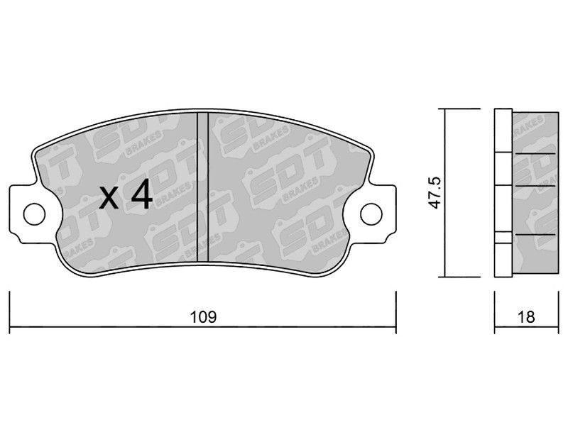 Pastillas de freno SDT RT1066 2534800RT, fabricadas con materiales de alta resistencia como cerámica y metal, ideales para vehículos motorizados que requieren un rendimiento óptimo y durabilidad. Diseño curvo con orificios de montaje precisos y dimensiones exactas (109 x 47.5 x 18 mm). Paquete de 4 unidades para reemplazo completo. Garantizan una f