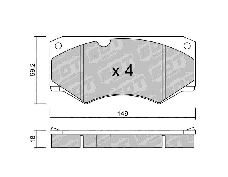 Pastillas de freno SDT RT1066 2591000RT de alta calidad, diseñadas para vehículos motorizados. Fabricadas con compuestos cerámicos y componentes metálicos para una frenada precisa y duradera. Incluyen ranuras de ventilación para mejor disipación del calor. Dimensiones precisas: 149 mm de ancho, 69,2 mm de alto y 18 mm de espesor. Paquete de 4 unida