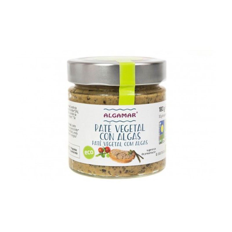 Pate vegetal con algas de la marca Algamár, en bote de 180g. Producto ecológico ideal para acompañar pan, tostadas o como aperitivo saludable. Con textura cremosa y sabor intenso, perfecto para amantes de la alimentación consciente y sostenible. Sin conservantes ni aditivos artificiales.