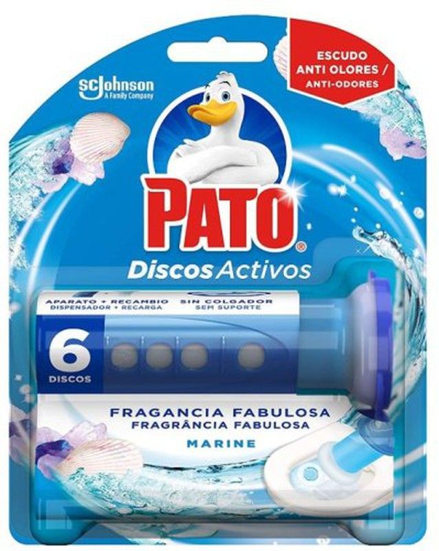 Pato Discos Activos Aparato Marino: pack con 6 discos y dispensador para un aroma fresco y duradero en el inodoro. Con tecnología anti-olores, ideal para mantener el baño limpio y perfumado. Fácil de usar y sin colgador. Fragancia marina que refresca el ambiente. Perfecto para hogares que buscan higiene y aroma de calidad.
