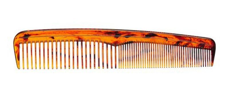 Peine Bolonia de 17 cm con diseño de resina en tonos naranja y marrón, ideal para peinar y desenredar el cabello con suave precisión. Fabricado con materiales resistentes y acabado brillante, perfecto para uso diario en casa o en el viaje. Su doble sección de dientes finos y gruesos facilita el peinado de todo tipo de cabellos.