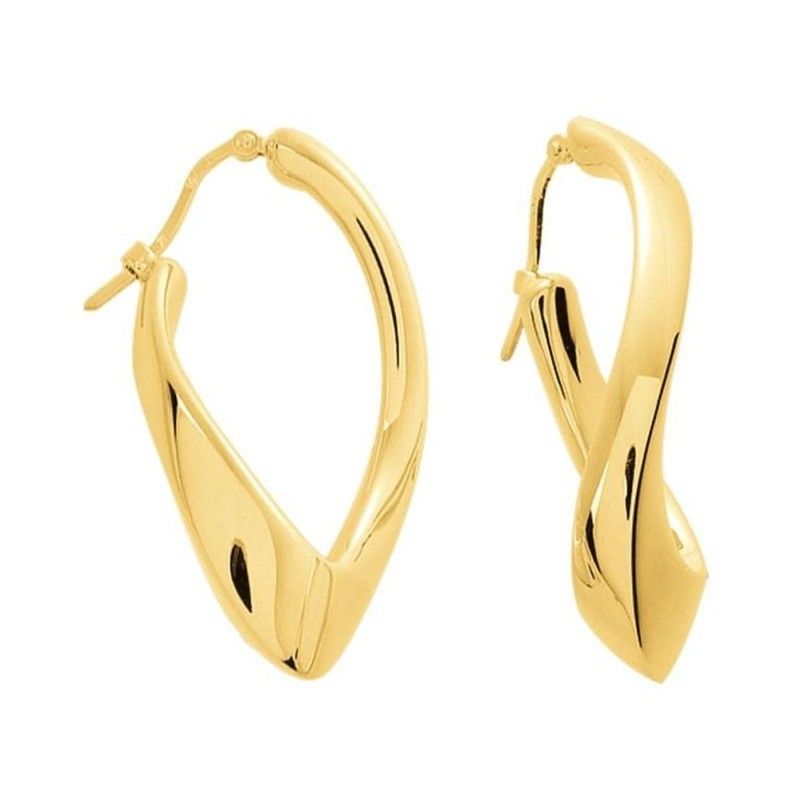 Elegantes pendientes aros en oro 18kts con diseño de doble espiral entrelazada, acabado pulido y brillo intenso. Ideales para mujeres que buscan un toque sofisticado y atemporal. Fabricados en oro de alta calidad, perfectos para ocasiones especiales o uso diario. Cierre seguro de presión para mayor comodidad.