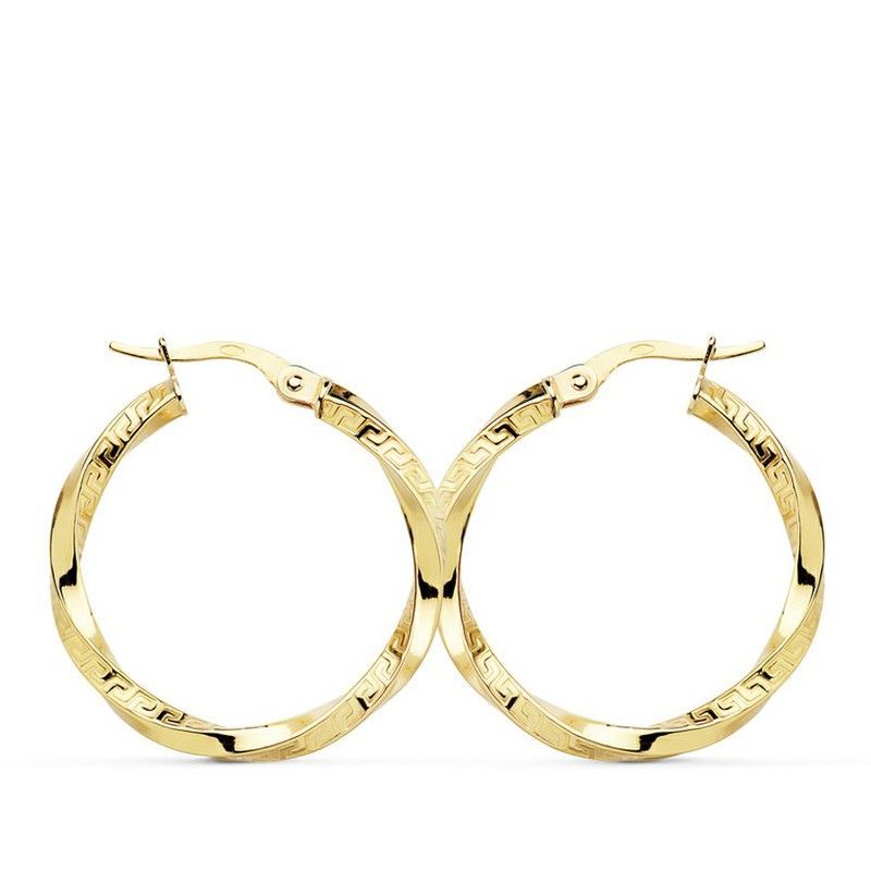 Pendientes Aros Oro 18kts Reliados Greca 25 X 2.5 mm 7000778