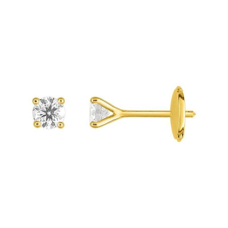 Elegantes pendientes de oro de 18 quilates con diamante H SI, montura de cuatro garras. Diseño clásico y sofisticado, perfectos para ocasiones especiales o uso diario. Calidad premium, ideal para mujeres que buscan joyería fina y atemporal.