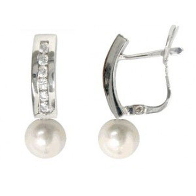 Pendientes Oro Blanco 18kts Perla Diamantes Brillantes 0.36 cts 026208