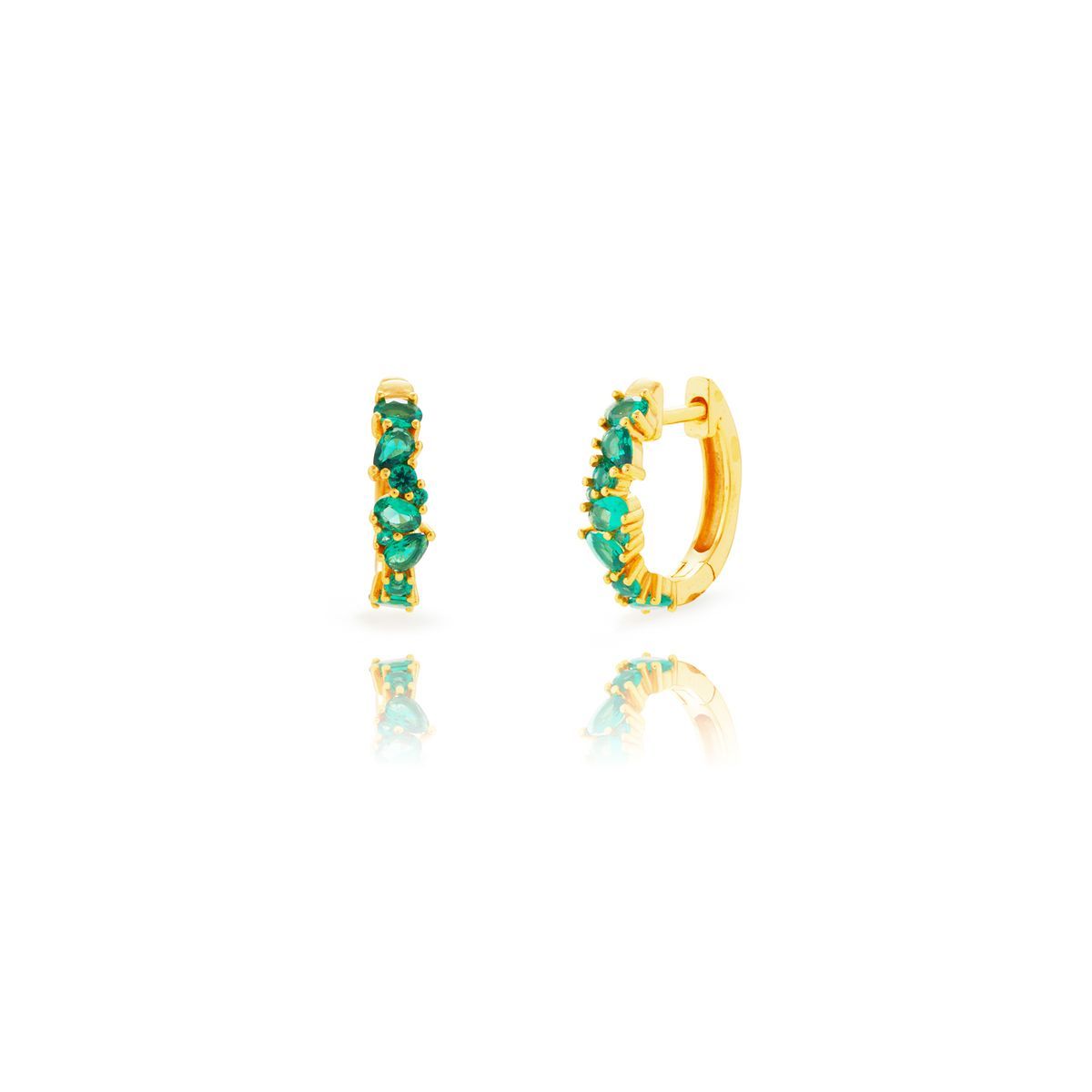 Pendientes aro de plata dorada con circonitas verdes incrustadas en línea continua, ideales para un look elegante y sofisticado. Con acabado brillante y diseño moderno, perfectos para mujeres que buscan joyas de calidad para ocasiones especiales o diarias. Tamaño 14mm, fácil de combinar con cualquier atuendo.