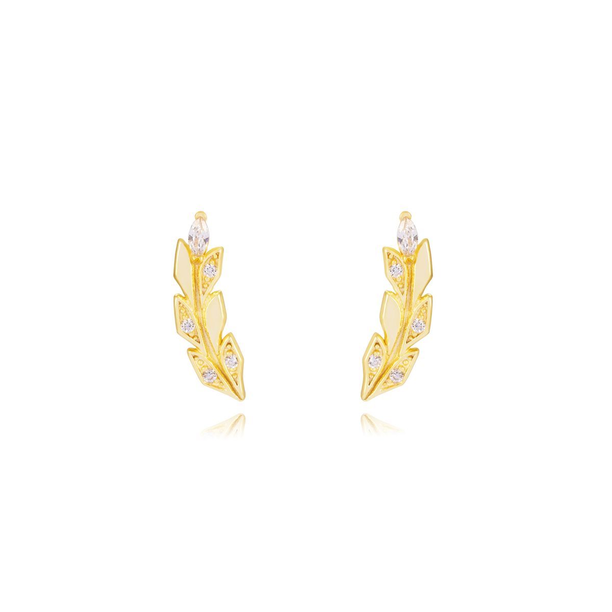Pendientes Plata Dorada 7,5x14,50mm PEZ1486DO Hojas Circonitas