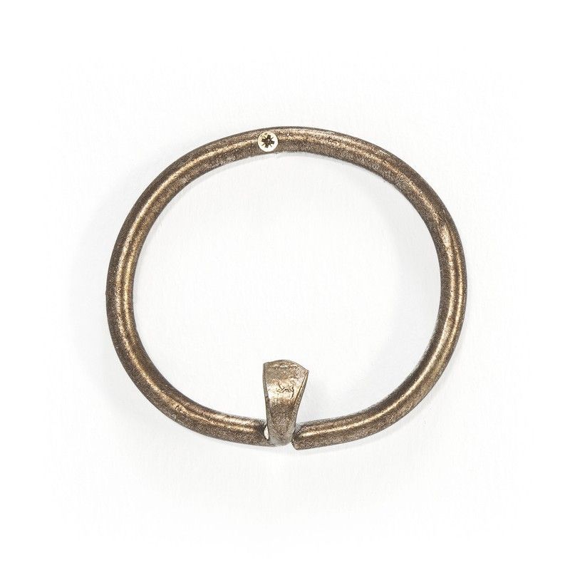 Perchero de metal dorado con diseño circular y acabado antiguo, ideal para colgar sombreros, abrigos o bolsos en entradas, vestíbulos o pasillos. Fabricado en metal resistente, ofrece un toque decorativo y funcional para tu hogar. Fácil de instalar con el tornillo incluido. Perfecto para espacios modernos o con estilo vintage.