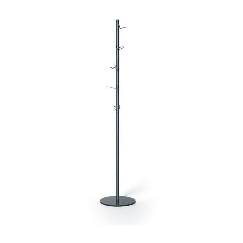 Perchero de pie Bologna en acabado negro, ideal para oficinas o espacios de entrada. Fabricado en metal, cuenta con múltiples ganchos para colgar abrigos, bolsos o documentos. Diseño minimalista y elegante que combina funcionalidad con estilo. Base circular estable para un uso seguro y duradero.