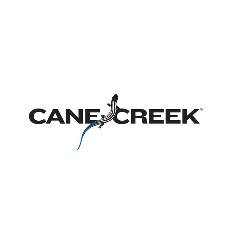 Logotipo de Cane Creek, marca especializada en componentes para bicicletas de montaña. Diseño elegante con silueta de lagarto en negro y azul, ideal para identificar productos de alta calidad en el mundo del ciclismo. Perfecto para entusiastas que buscan rendimiento y fiabilidad en sus accesorios de bicicleta.