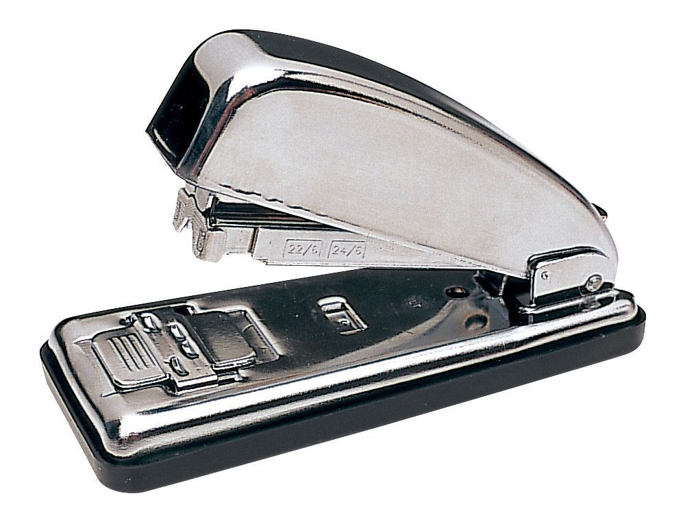 Grapadora PETRUS 226 cromada, ideal para oficinas y uso diario. Fabricada en acero inoxidable con base de plástico negro, ofrece resistencia y durabilidad. Capacidad para hasta 30 hojas y compatible con grapas 22/6 y 24/6. Diseño compacto y funcional para un uso cómodo y eficiente.