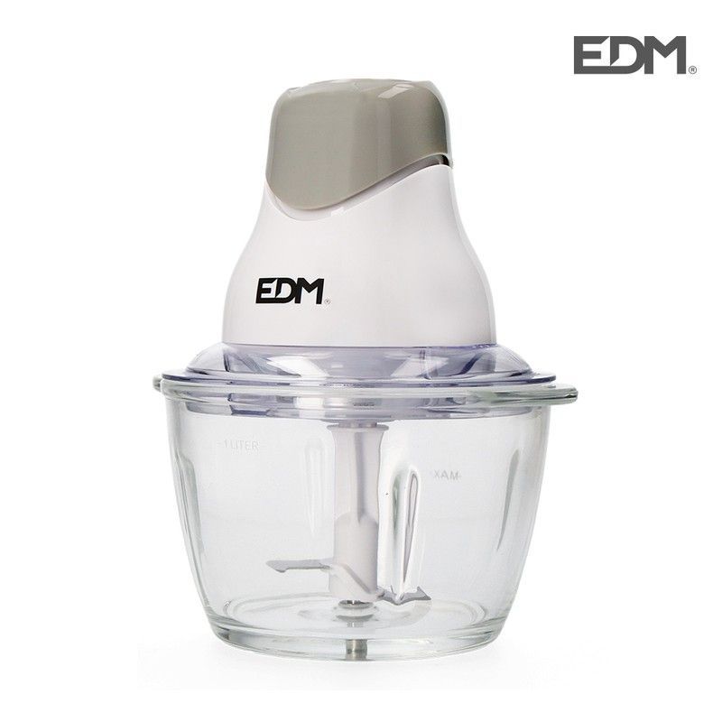 Picadora EDM de 320W con recipiente de cristal transparente, ideal para picar, mezclar y triturar alimentos en la cocina. Diseño moderno y compacto, con cuchillas de metal resistentes y tapa segura. Perfecta para preparar salsas, purés, picaduras y más. Fácil de usar y limpiar. Ideal para hogares que buscan eficiencia y calidad en electrodomésticos
