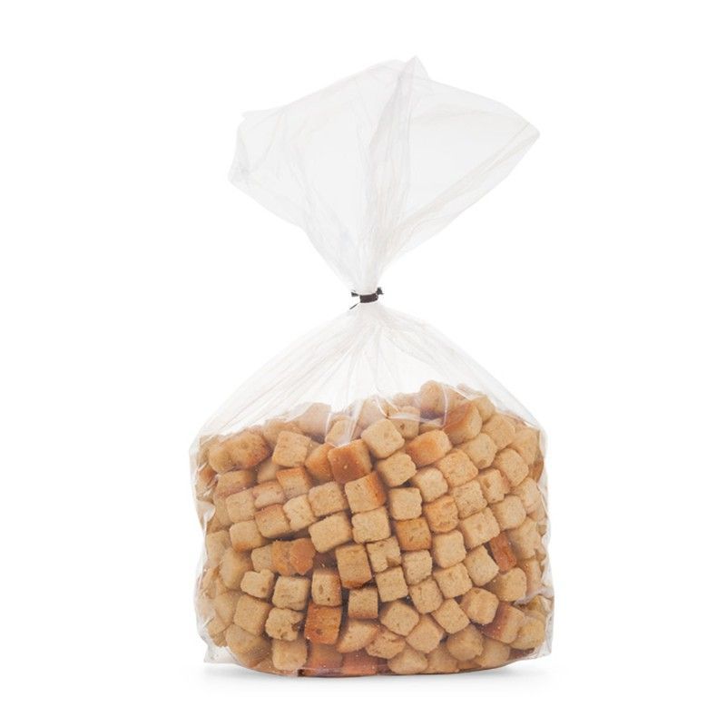Picatostes tostados de 500 grs, ideales para acompañar sopas, cremas o como snack saludable. Presentados en bolsa de plástico transparente que permite ver su textura crujiente y color dorado. Perfectos para uso diario en cocina o como ingrediente en recetas caseras.