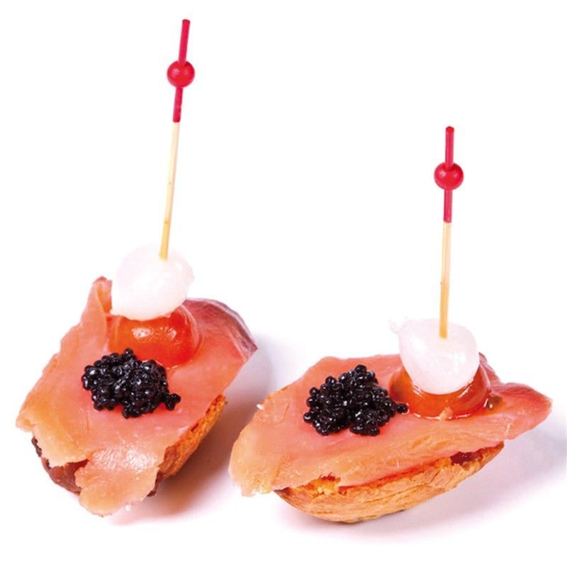 | Nombre | Picks bola roja 12cm bambú 100 unidades por paquete |