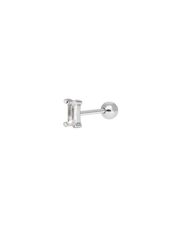 Piercing Marea para mujer en acero inoxidable con circonita rectangular, diseño elegante y minimalista. Ideal para lóbulo o cartílago, acabado plateado brillante y piedra transparente que brilla con luz. Joya de calidad para un look sofisticado y moderno.