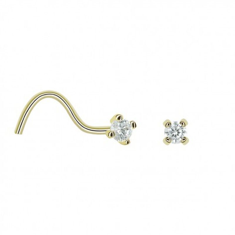 Piercing de nariz en oro de 18 quilates con circonita de 1,9 mm, montada en cuatro garras. Diseño elegante y discreto, ideal para quienes buscan un toque sofisticado. Fabricado en oro de alta calidad, perfecto para uso diario o ocasiones especiales. Adecuado para adultos que desean un accesorio duradero y brillante.