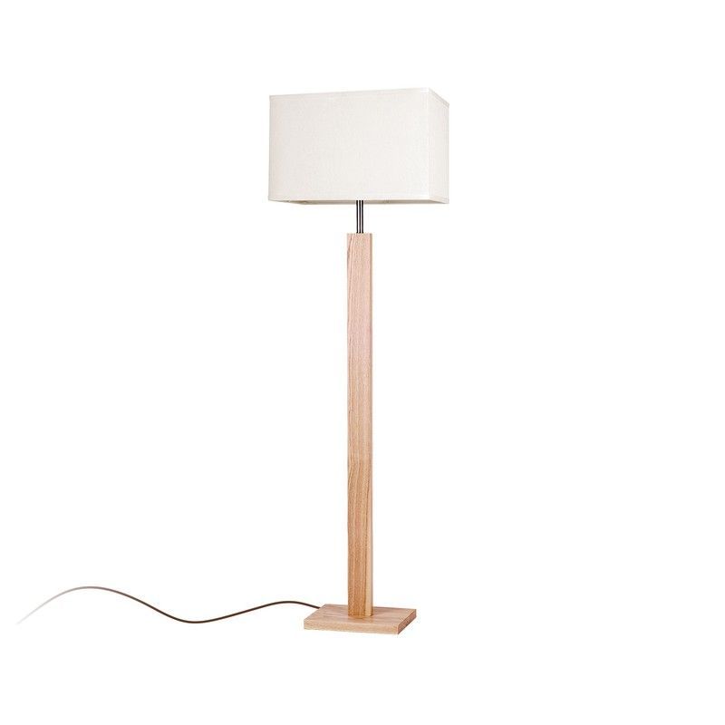 Lámpara de pie ELDA Lumiere con diseño minimalista y elegante, ideal para salones y espacios modernos. Fabricada con estructura de madera clara y difusor de tela blanca, ofrece una iluminación cálida y sofisticada. Su base cuadrada y cable negro aportan un toque contemporáneo. Perfecta para crear ambientes acogedores y estilizados.